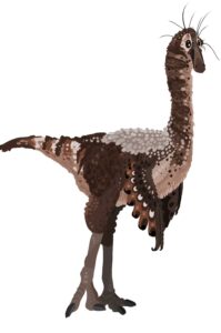 Gallimimus is one of the better-understood ornithomimids (also known as “ostrich-mimic dinosaurs”, for its similarities to modern large birds). The discovery of bone beds with the same species suggests the animal could be gregarious (live in groups). It had large eyes, a long flexible neck and a gracile toothless beak.