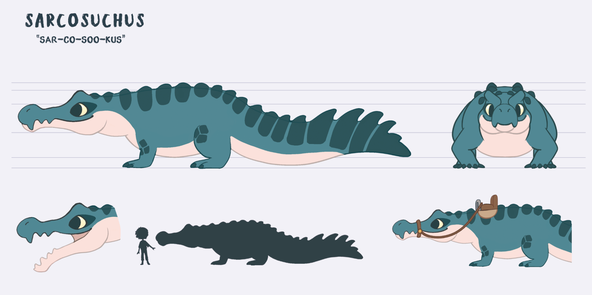 What makes the Sarcosuchus so unique is its bulky body shape and long, strong tail. This character design really screams ‘sturdy’. Being of the crocodile family, this is the first of its kind in Paleo Pines and so that gave me lots of room to explore how we can turn one of the world’s deadliest creatures into a farming companion with the challenge of working around this very dense body shape.