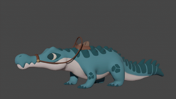 It didn’t take long for me to find out why I loved this rig. When tackling its happy animation I was pleasantly surprised by the rig’s flexibility and I was able to push for this lovely, playful pose. It was this animation that allowed me to see similarities in one of my favourite companion characters- The Fire Spirit, Frozen II. Despite its dense feel and the massive difference in scale, the Sarcosuchus rig allowed for a similar flexibility to that of the Fire Spirit, meaning that with some thoughtful animation tactics, I could tackle some usually bulky animations such as turns, to be a little more slick rather than clunky.
