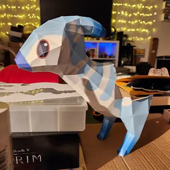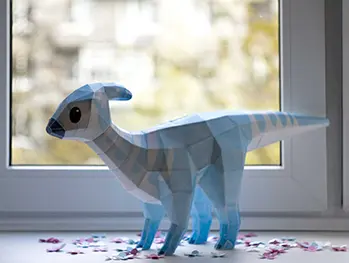 Before you reach Paleo Pines, a family member gives you a mysterious egg and a little parasaurolophus hatches from it! This gorgeous little dino quickly becomes your loyal friend. You can buld your very own desk-sized young Parasaurolophus so that you're never without your Lucky nearby.